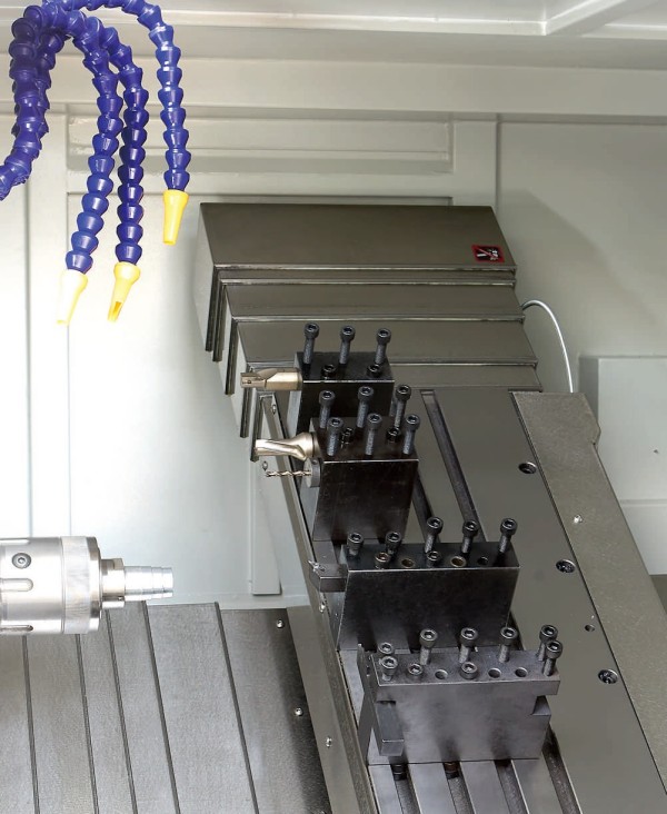 · Kan utrustas med torn, flugkutterhuvuden, krafthuvuden, etc. Krafthuvudet kan lutas från 0° till 90° för integrerad fräsning och svarvning.